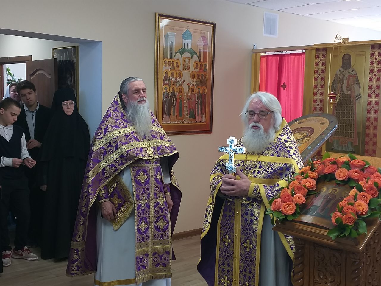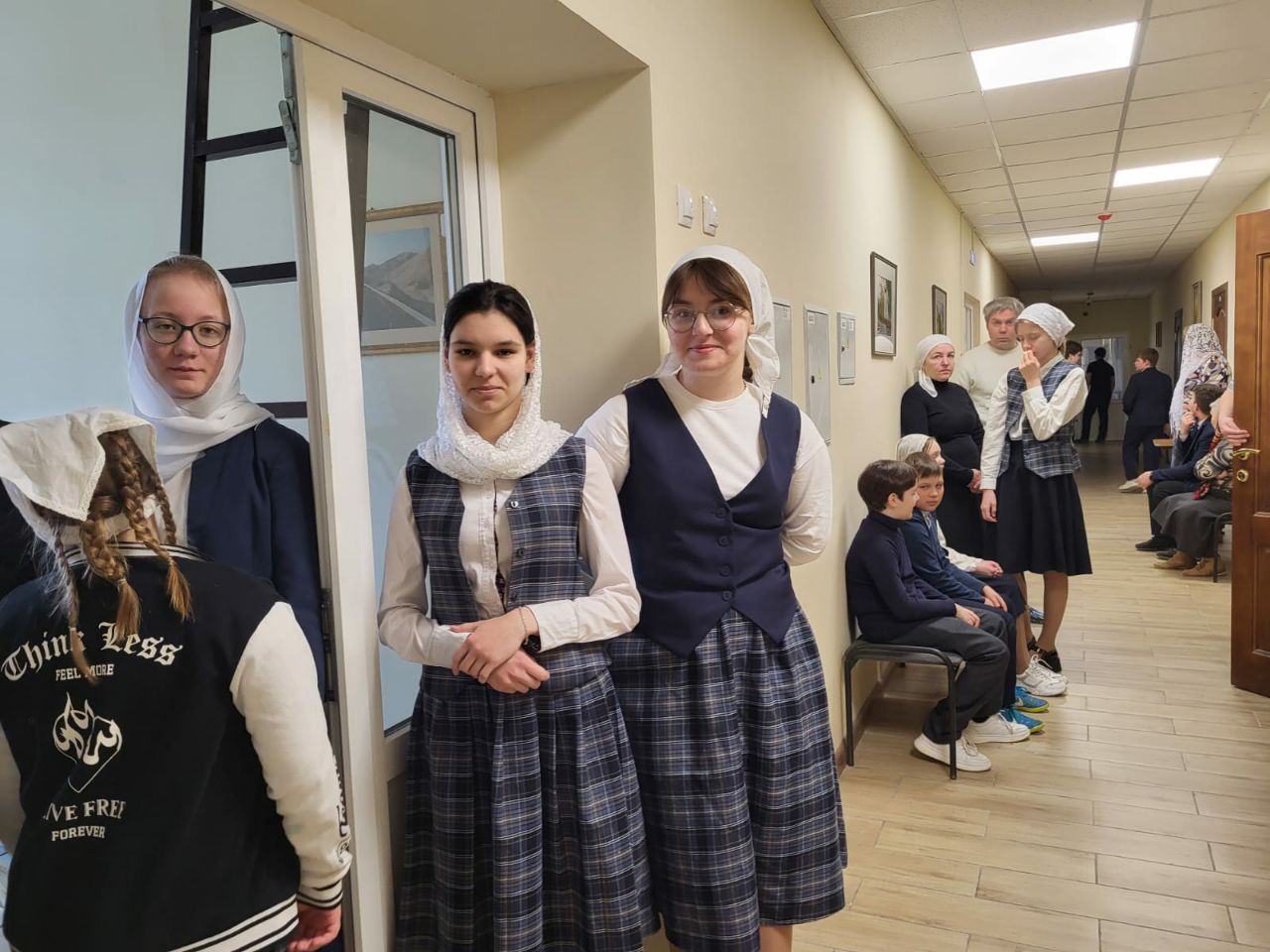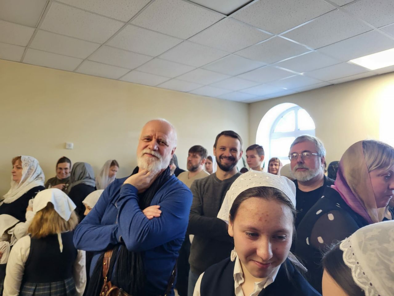 Поскольку организатором богослужения по благословению правящего владыки Феоктиста был Никольский монастырь, здесь же молилась и настоятельница обители матушка Евстолия, совмещая молитву с послушанием корреспондента. Рядом с ней – та, на чьих плечах все ежедневное школьное бытие – директор гимназии Валентина Кондратьевна Толстова. Возглавляли ряды учеников младших классов их классные руководители, а учащиеся старших классов уже в более свободном положении разместились кто где. Как и их взволнованные педагоги. Чувство сокровенного торжества прочитывалось во всех лицах какой-то особенной серьезностью. Значение важности происходящего – общей молитвы, совершающейся впервые всем коллективом невозможно переоценить! И это значение читалось на всех лицах от мала до велика. Таким был этот домашний, святой праздник.
