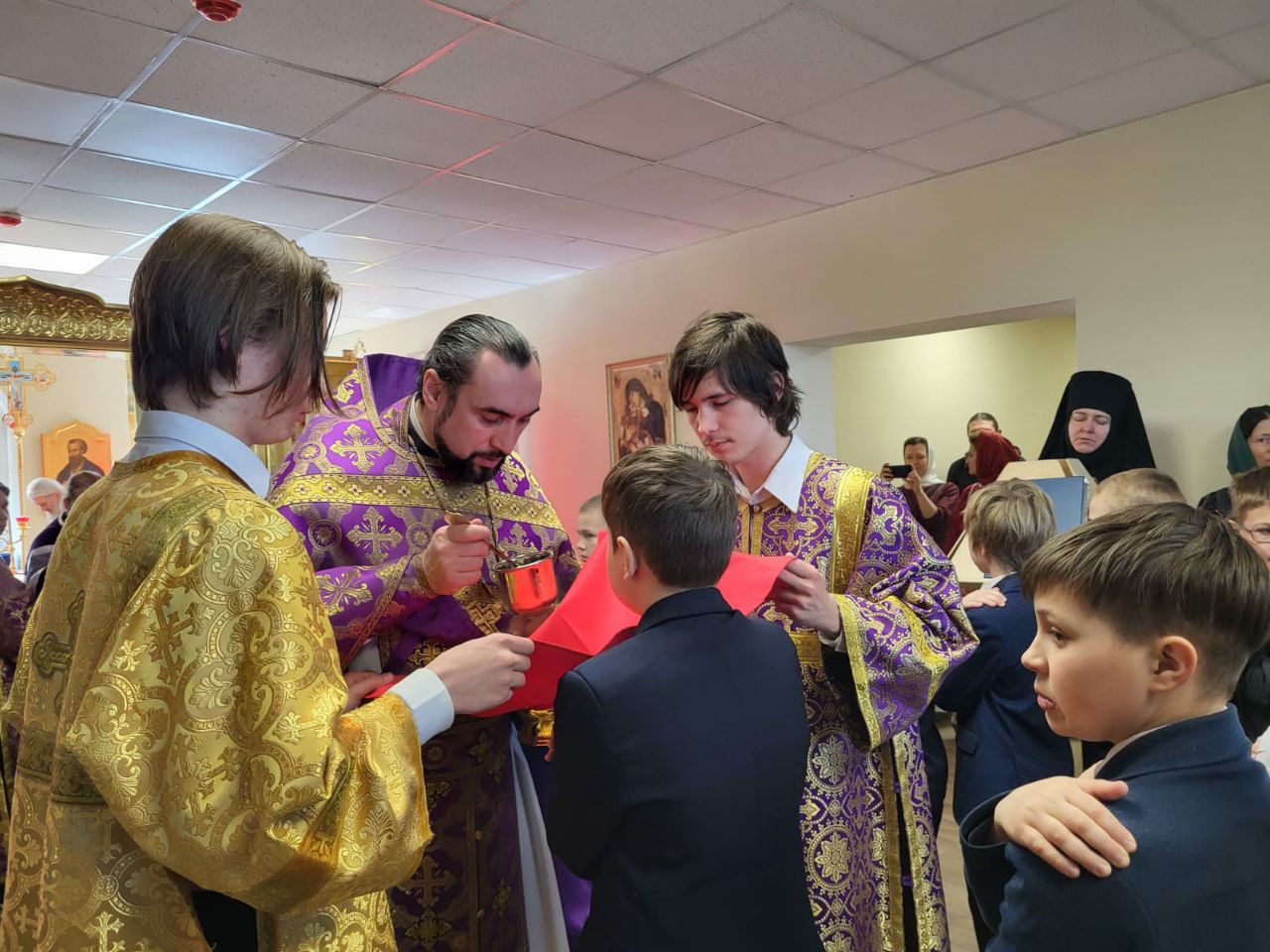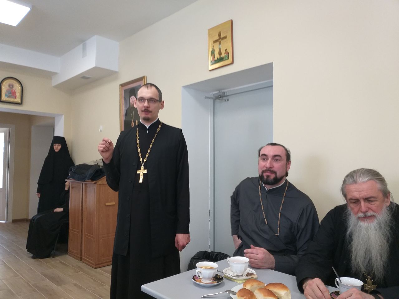 В просторной трапезной, где после службы состоялось чаепитие с вкусными постными пирожками, также звучали приветственные теплые слова, поздравления школьникам, их родителям и учителям с обретением удобного современного здания с собственным храмом.