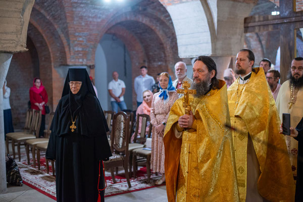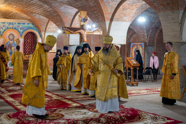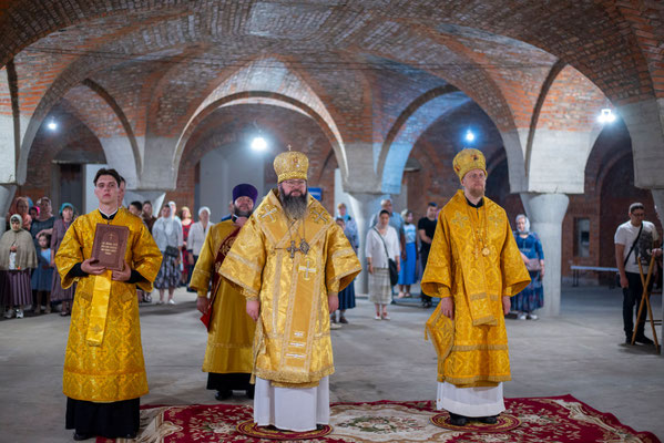 17 июля 2025 года, в день памяти святых Царственных страстотерпцев: царя Николая, царицы Александры, царевича Алексия, великих княжен Ольги, Татианы, Марии и Анастасии, митрополит Смоленский и Дорогобужский Исидор совершил Литургию в приделе святых Царственных страстотерпцев строящегося храма Святой Софии, Премудрости Божией, на подворье Никольского женского монастыря в селе Годеново Ростовского района.